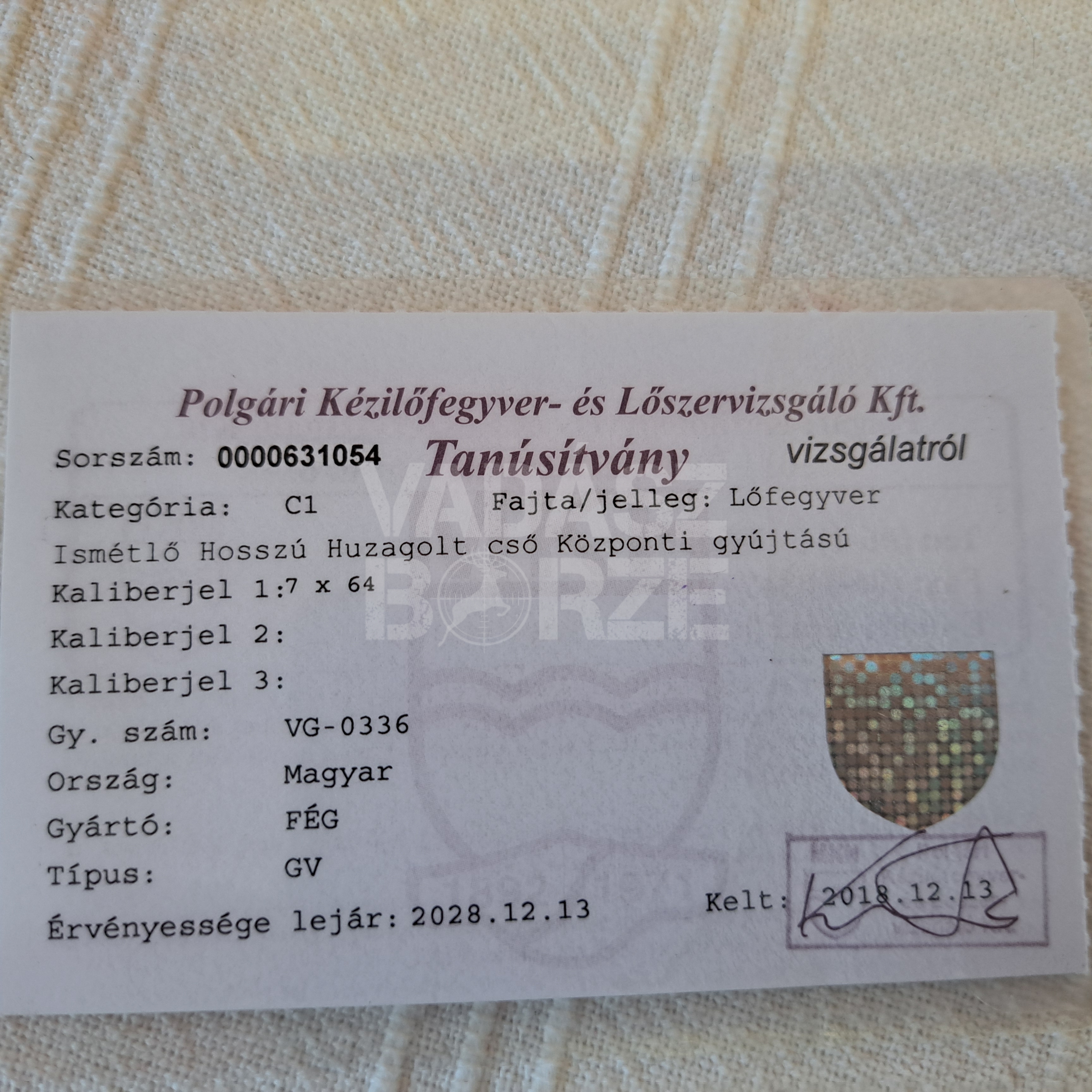 Fegyverek / Golyós fegyverek / Kínál / FÉG / GV / 7x64 / egycsövű (merev) / / belső táras / jobbkezes / C1 / megkímélt / / Érvényes műszakival rendelkezik / Eladó FÉG 7x64 -es golyós lőfegyver, 2,5 - 10 x 50 mm-es céltávcsővel. Igen megkímélt állapot, kevés lövésszám, 2028.12. hóig érv. műszaki, a képeken látható faragás a tusban, hordtáska, lőszerek. ( Csere ajánlat érdekel, ami nem vadászati jellegű...)