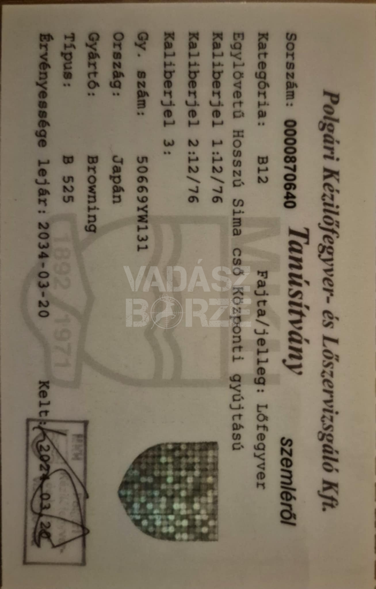Fegyverek / Sörétes fegyverek / Kínál / Browning / B 525 / 12/76 / bock / 76 cm / belső choke / jobbkezes / egyéb / új / 2024. / Érvényes műszakival rendelkezik / Eladó egy teljesen új (egyszer használt) Browning B 525 típusú sörétes vadászfegyver tartozékaival együtt. A fegyvert 2024. évben gyártották, a műszaki érvényessége 2034.03.20.