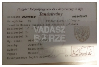 A fegyver jogtiszta, érvényes engedélyekkel rendelkezik, állapota jó.